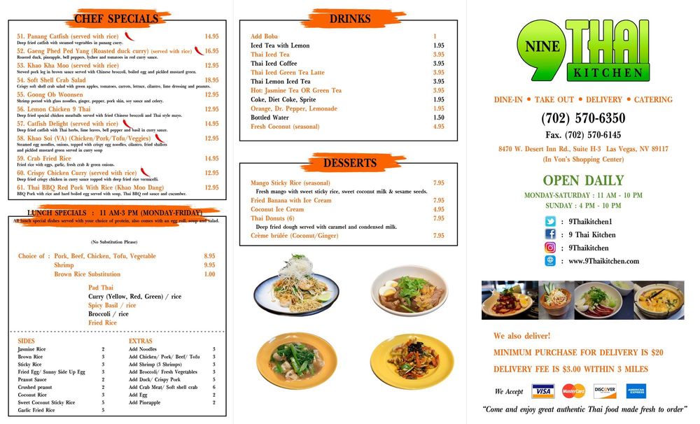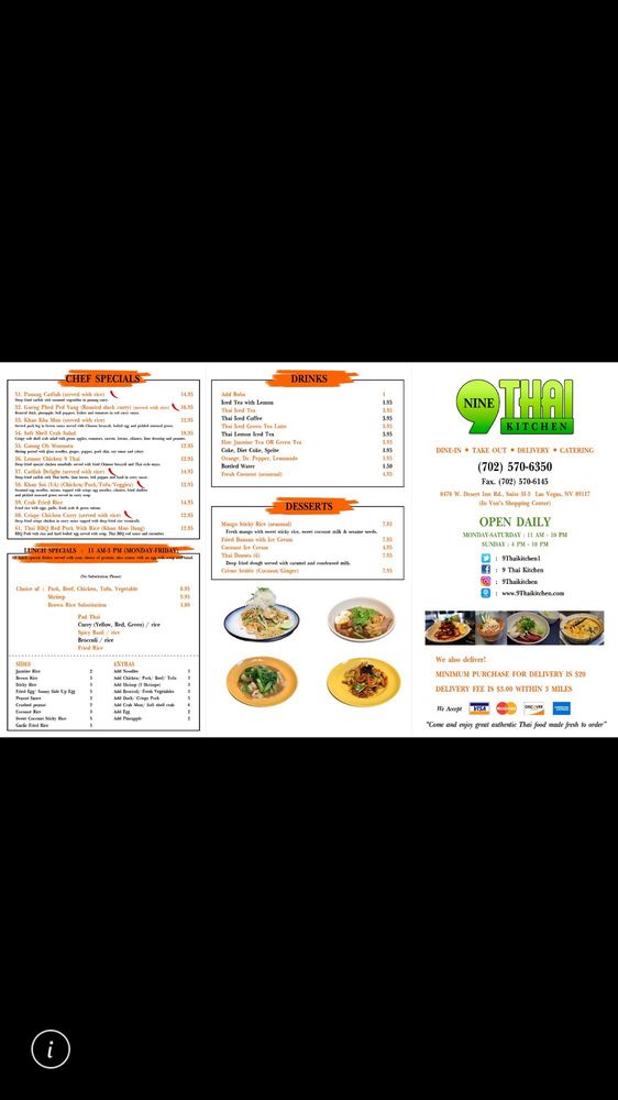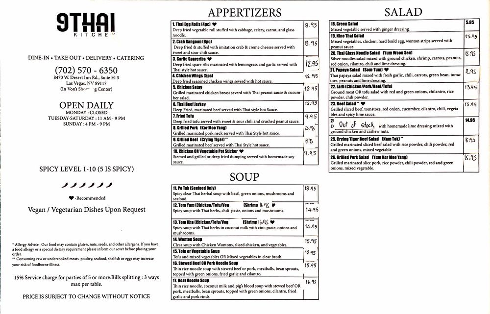 Welcome to 9 Thai Kitchen, a delightful culinary gem nestled in Las Vegas. This veteran-owned eatery serves authentic Thai cuisine in a casual yet trendy atmosphere, perfect for groups or a cozy date night. With a menu that caters to all dietary preferences, including a variety of vegan and vegetarian options, there’s something for everyone.